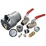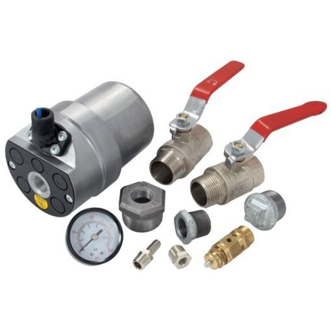 Appendageset voor een 2.000 liter persluchtketel - BLAUW. Bestaande o.a. uit veerveiligheid, manometer, kogelkranen en diverse nippels.