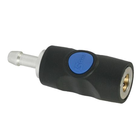 De ISI snelkoppelingen zijn drukknop bediende perslucht veiligheidssnelkoppelingen. Door op de blauwe knop te drukken sluit de snelkoppeling de luchttoevoer af, de slang wordt ontlucht en vastgehouden in de snelkoppeling tot hij drukloos is. Het is o... Lees meer.