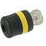 De ASG 06 snelkoppeling is schuifhuls bediende perslucht veiligheidssnelkoppeling. Door de huls met de band met gele ring naar achteren te schuiven, sluit de snelkoppeling de luchttoevoer af. De slang ontlucht maar wordt vastgehouden tot de schuifhuls naar voren geschoven wordt. Met deze snelkoppeling heeft u een snelkoppeling die voldoet aan de ARBO wet en de veiligheidseisen van de ISO 4414.