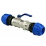 ● RECHTE 3-DELIGE INSTEEKKOPPELINGEN, MET KOGELKRAAN, IN DE DIAMETERS Ø 20, 25, 32, 40, 50 EN 63 MM.